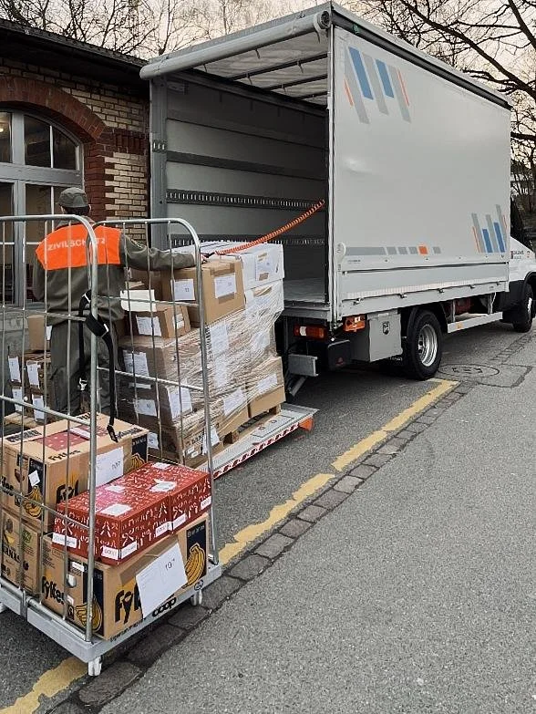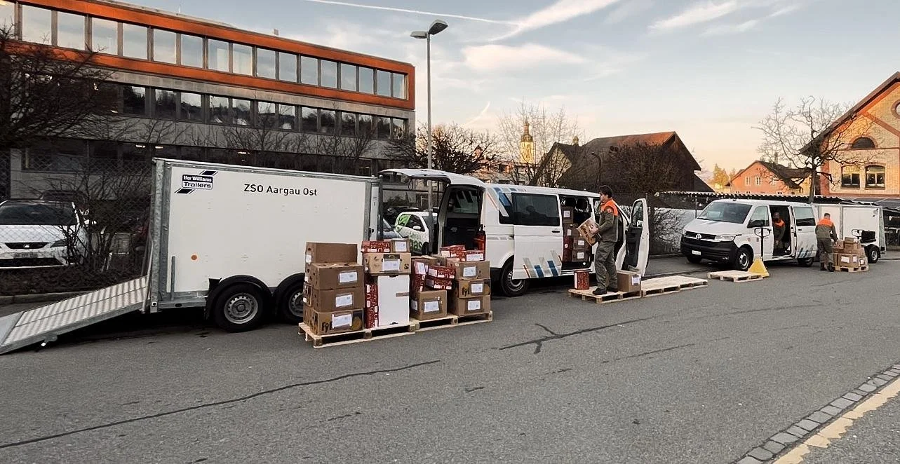Am Donnerstag, 26. Februar 2026, übernahm die ZSO Aargau Ost die operative Verantwortung für die Auslieferung. Insgesamt 16 Angehörige des Zivilschutzes sind dafür eingeteilt. Sie planen die Touren, koordinieren die Abläufe, übernehmen die Fahrzeuge, beladen diese fachgerecht und sorgen dafür, dass die Hilfsgüter zuverlässig an 69 Stellen in der Region ankommen. Sieben Fahrzeuge der ZSO – inklusive Anhänger – stehen dafür im Einsatz. Die Koordination auf Seiten des SRK liegt bei Marie-Helen Roniger von der Regionalstelle Fricktal, die eng mit den Einsatzleitenden des Zivilschutzes zusammenarbeitet.