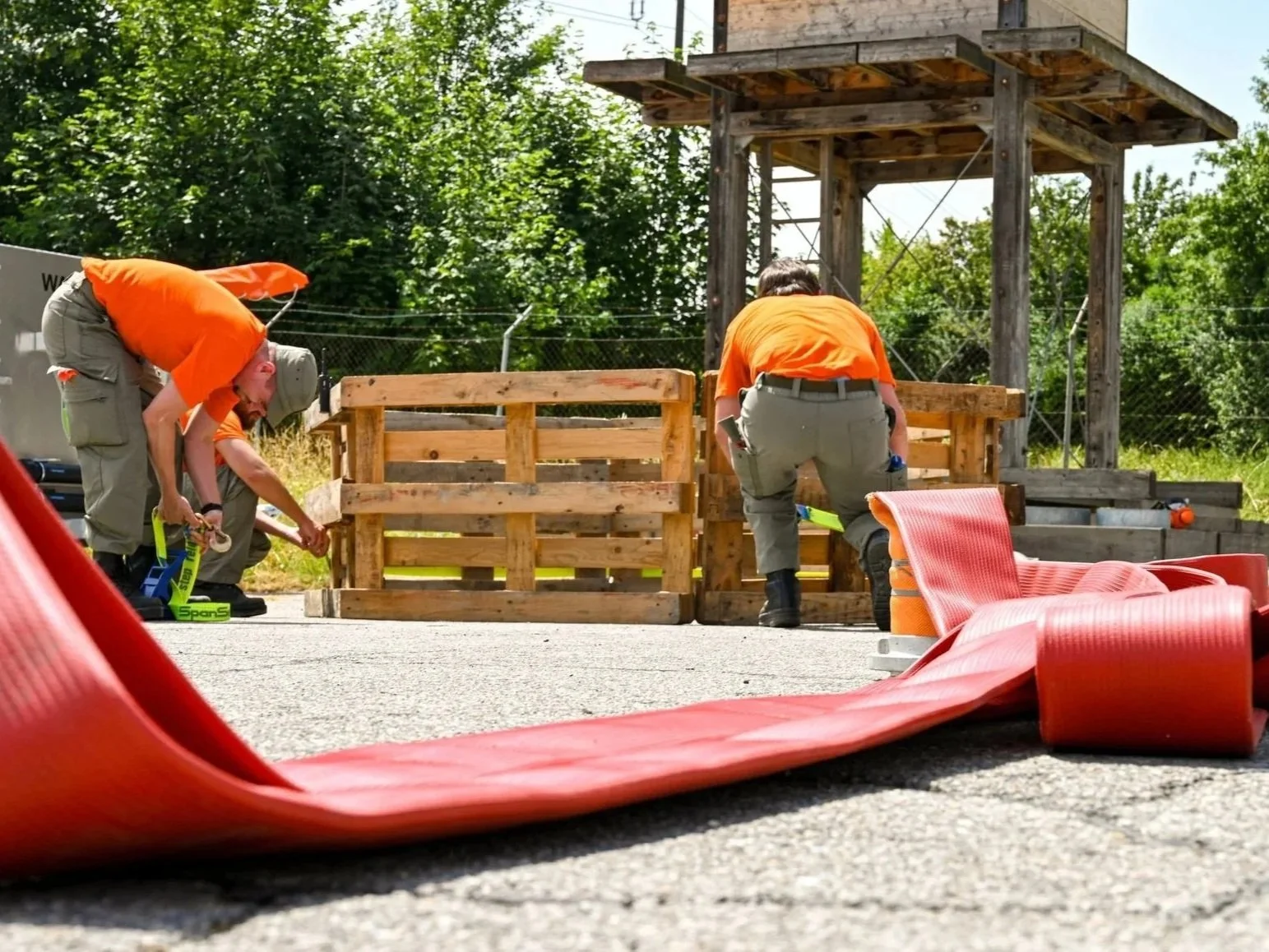 Sollte es zu einem Hochwasserereignis kommen, unterstützen wir die örtliche Feuerwehr beim Auspumpen und Abtransport, aber auch beim Bereitstellen von Sandsäcken.